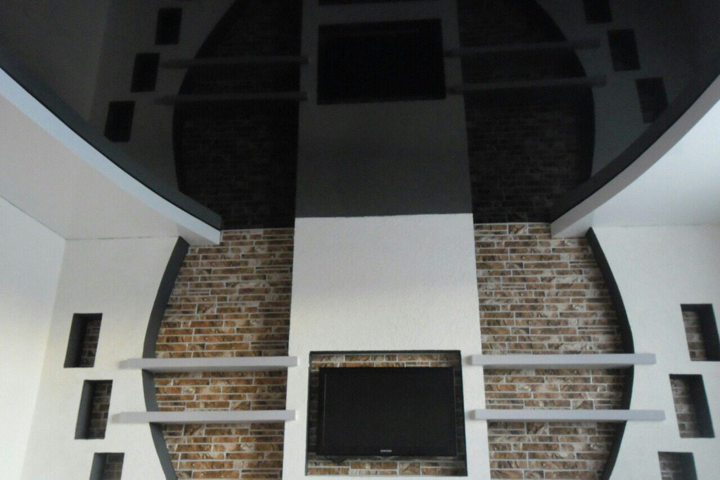 Чёрные глянцевые натяжные потолки также являются символом современного стиля. Они создают эффектное зеркальное отражение, которое добавляет глубины и объёма любому помещению. Такой потолок будет выглядеть особенно впечатляюще в комнатах с высокими потолками.