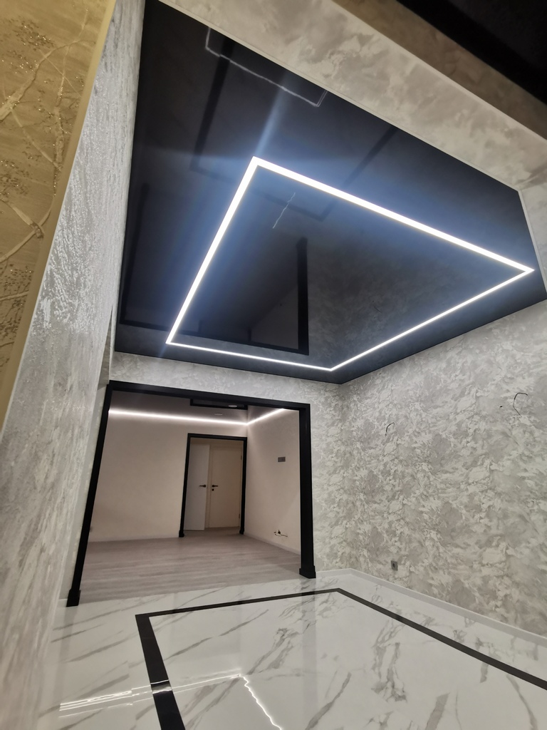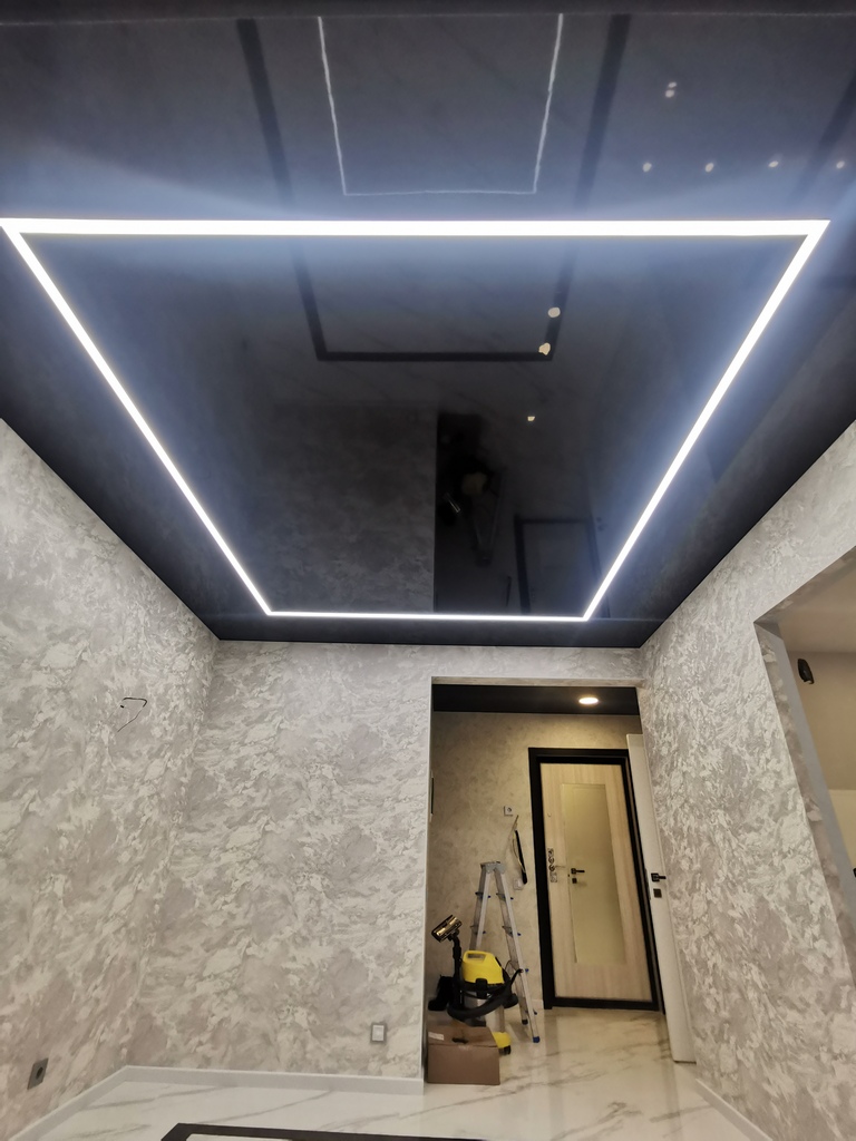 Подводя итоги, можно сказать, что чёрный глянец — это не только элегантный и современный выбор для любого помещения, но и интересный объект для игр света и тени. При правильном подходе и профессиональной установке, такой потолок станет ярким акцентом в вашем интерьере и подчеркнет его индивидуальность.