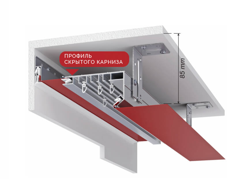 Приятный внешний вид достигается скрытым креплением для штор (оно выше уровня полотна).
