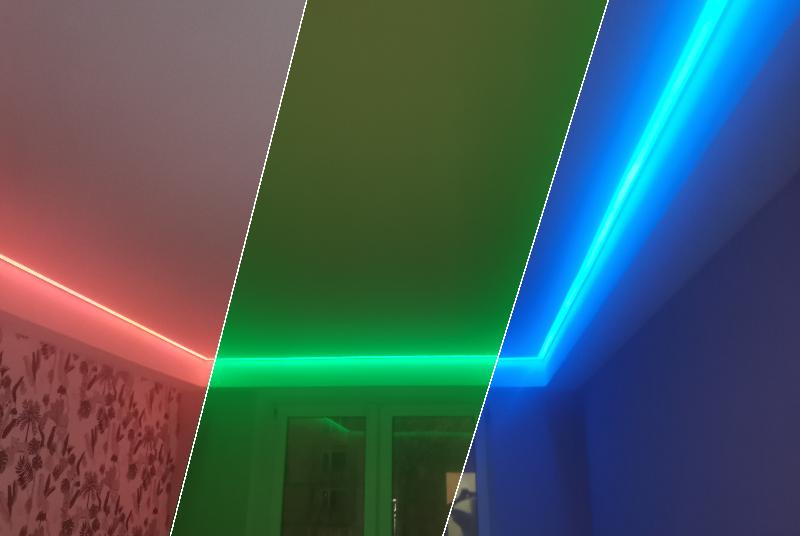 Все эти наборы букв — не что иное, как сочетание вариантов цветов внутри одного диода. Когда одни цвета опредёленным образом накладываются на другие, получаются новые оттенки, которые вы можете выбирать на пульте управления подсветкой. Что же касается классических белых светодиодных лент, то и их можно разделить — на холодные, тёплые и нейтральные. Теплота цвета наверняка вам знакома по обыкновенным лампам (холодный белый и тёплый жёлтый свет).