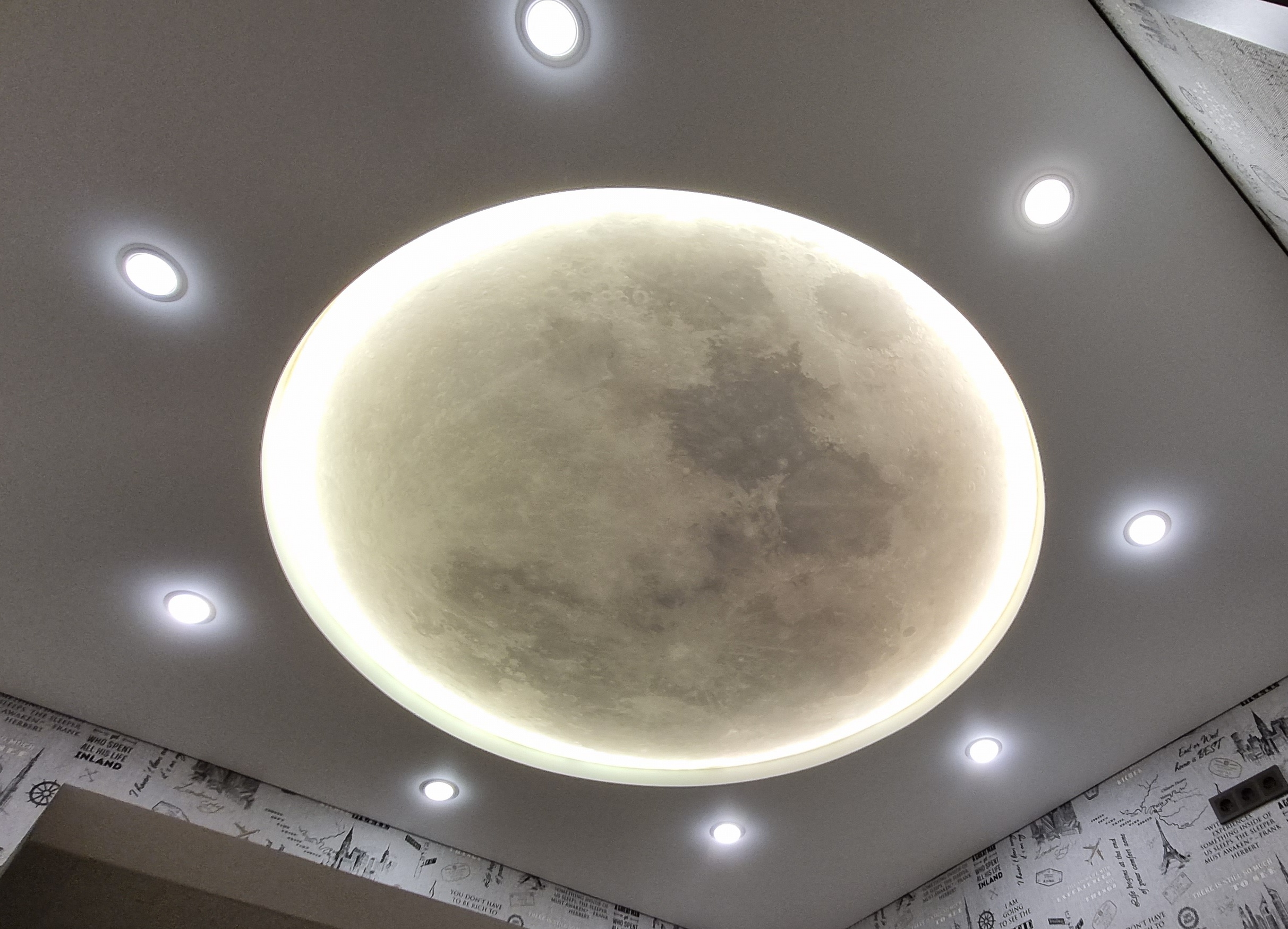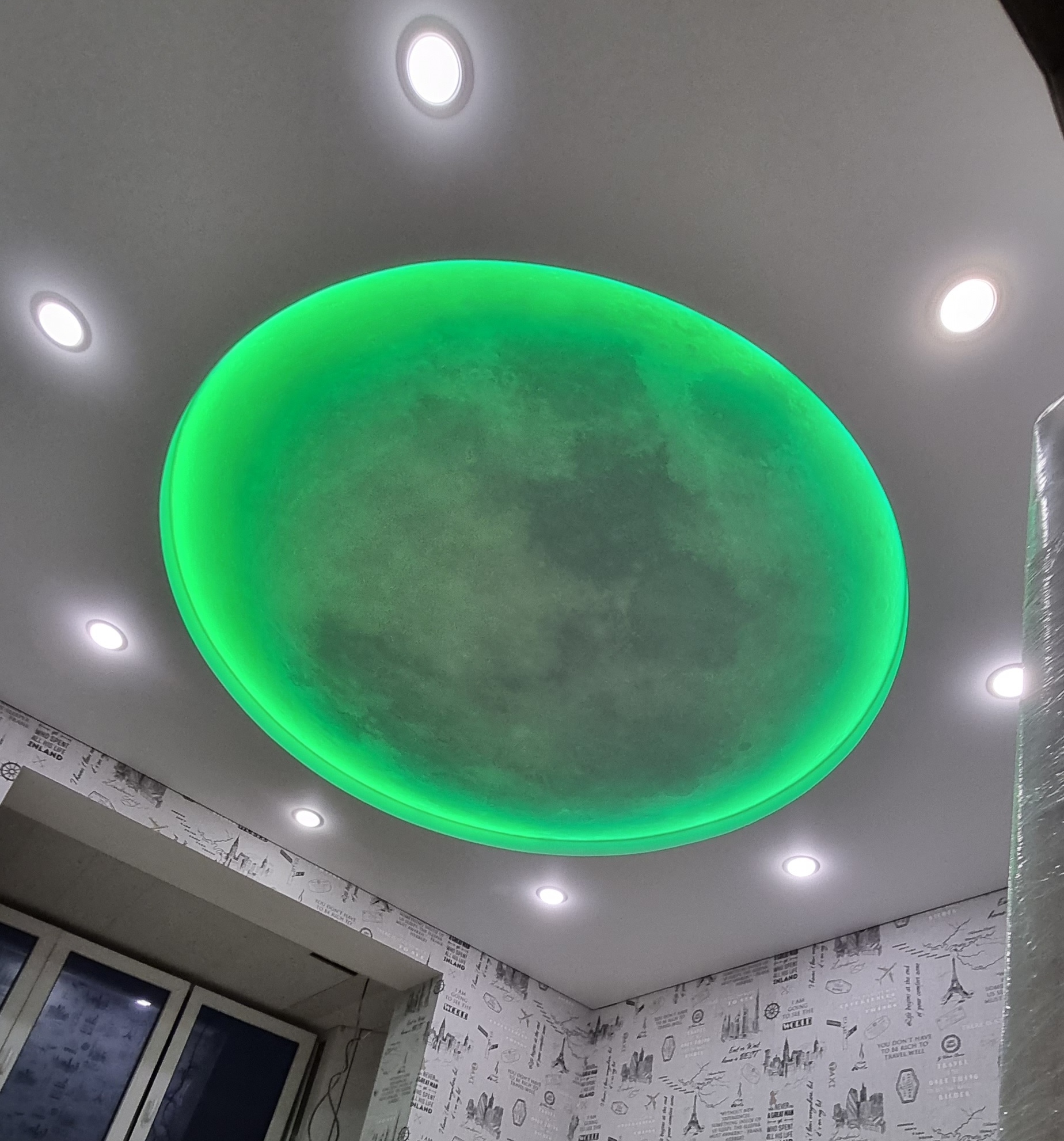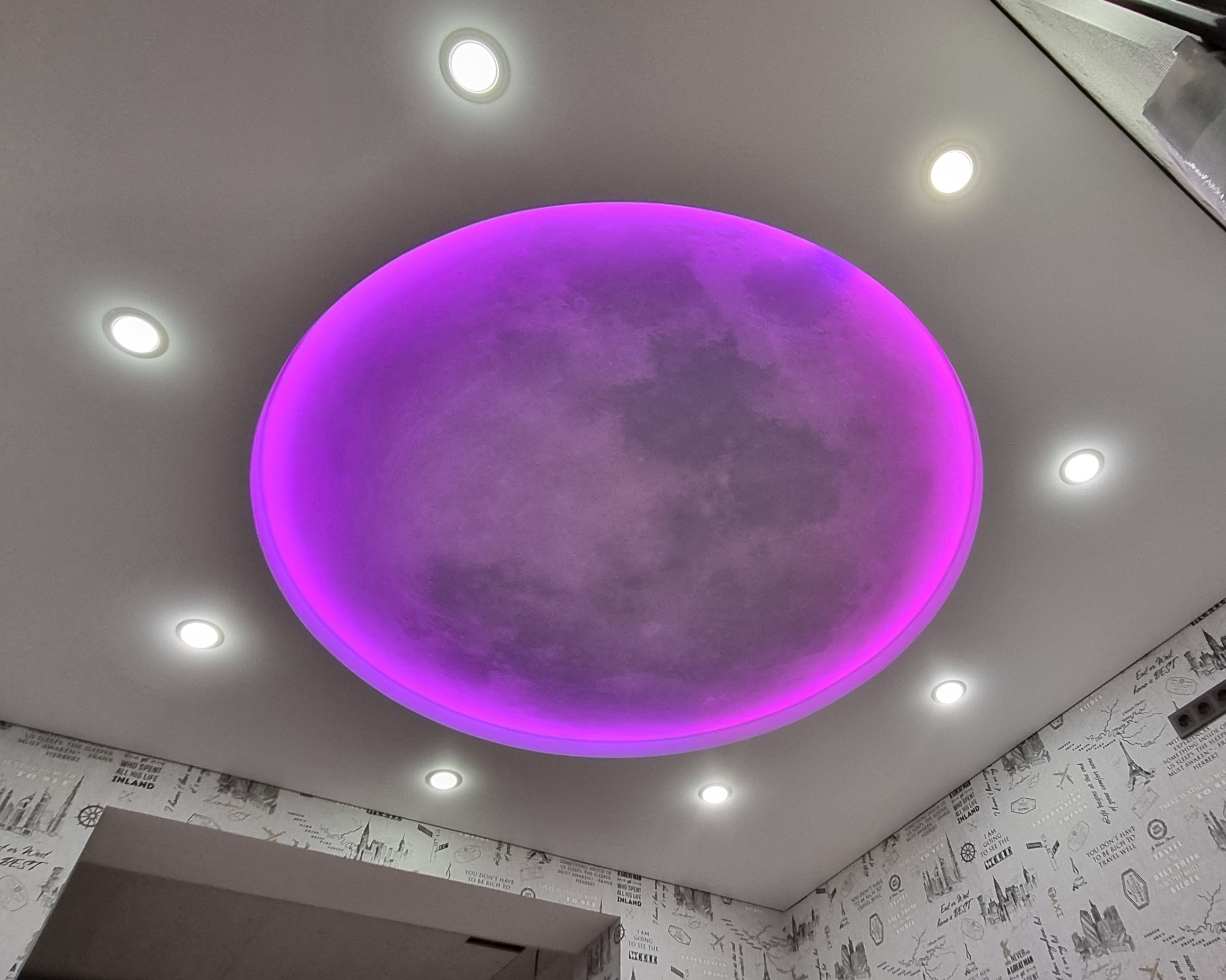 Располагая их на определенном расстоянии от полотна, вы получаете впечатляющий эффект. Это расстояние обычно составляет не менее 30 см, поэтому такие потолки чаще всего используют в высоких помещениях. Однако, они также могут быть установлены в обычных комнатах, хотя это потребует большего количества световых лент и, следовательно, более затратно.