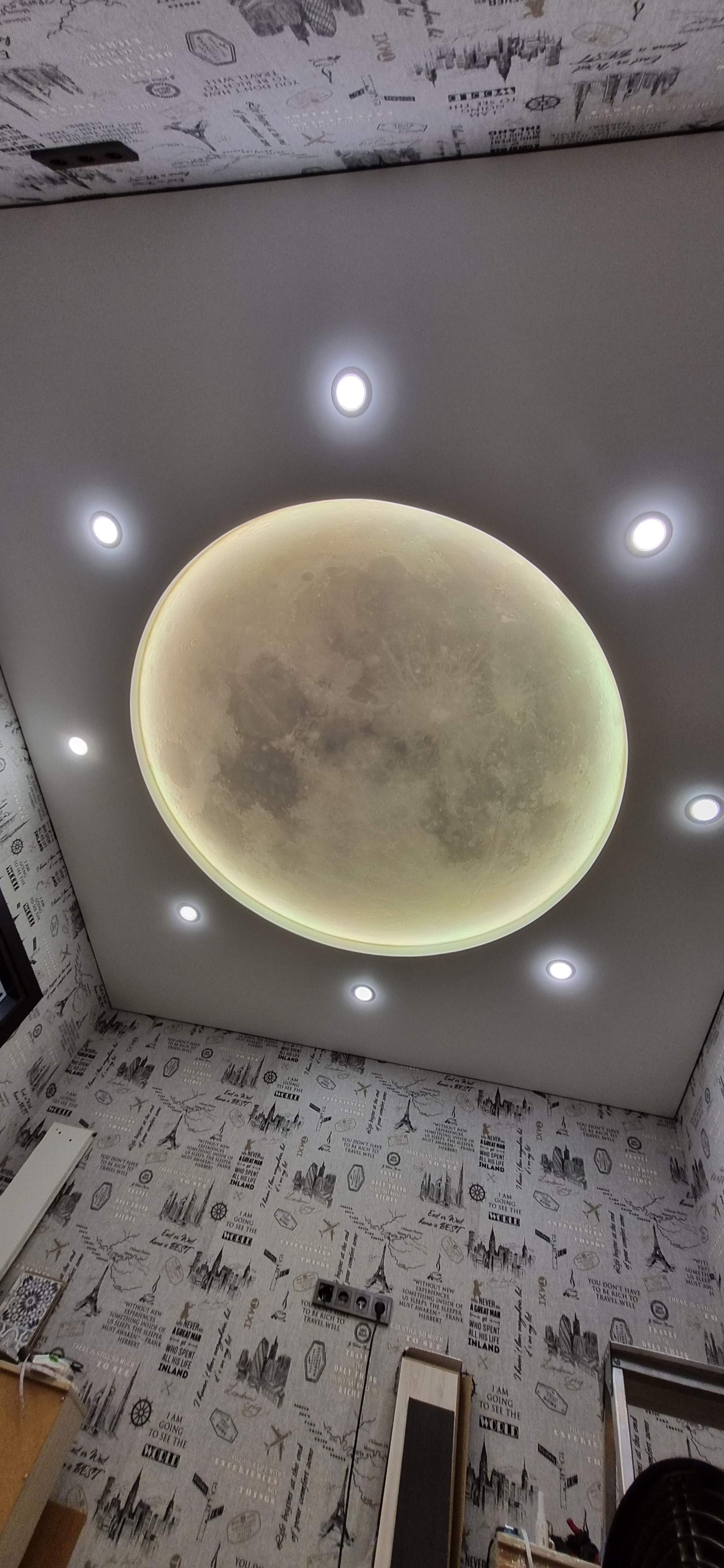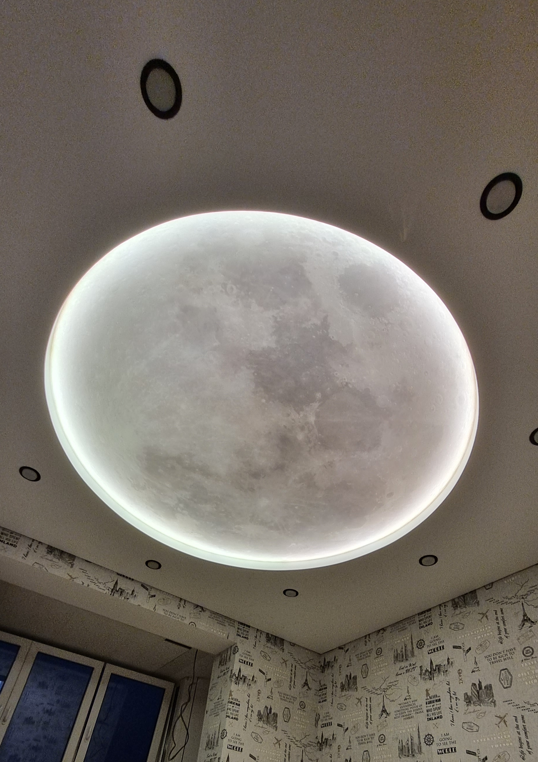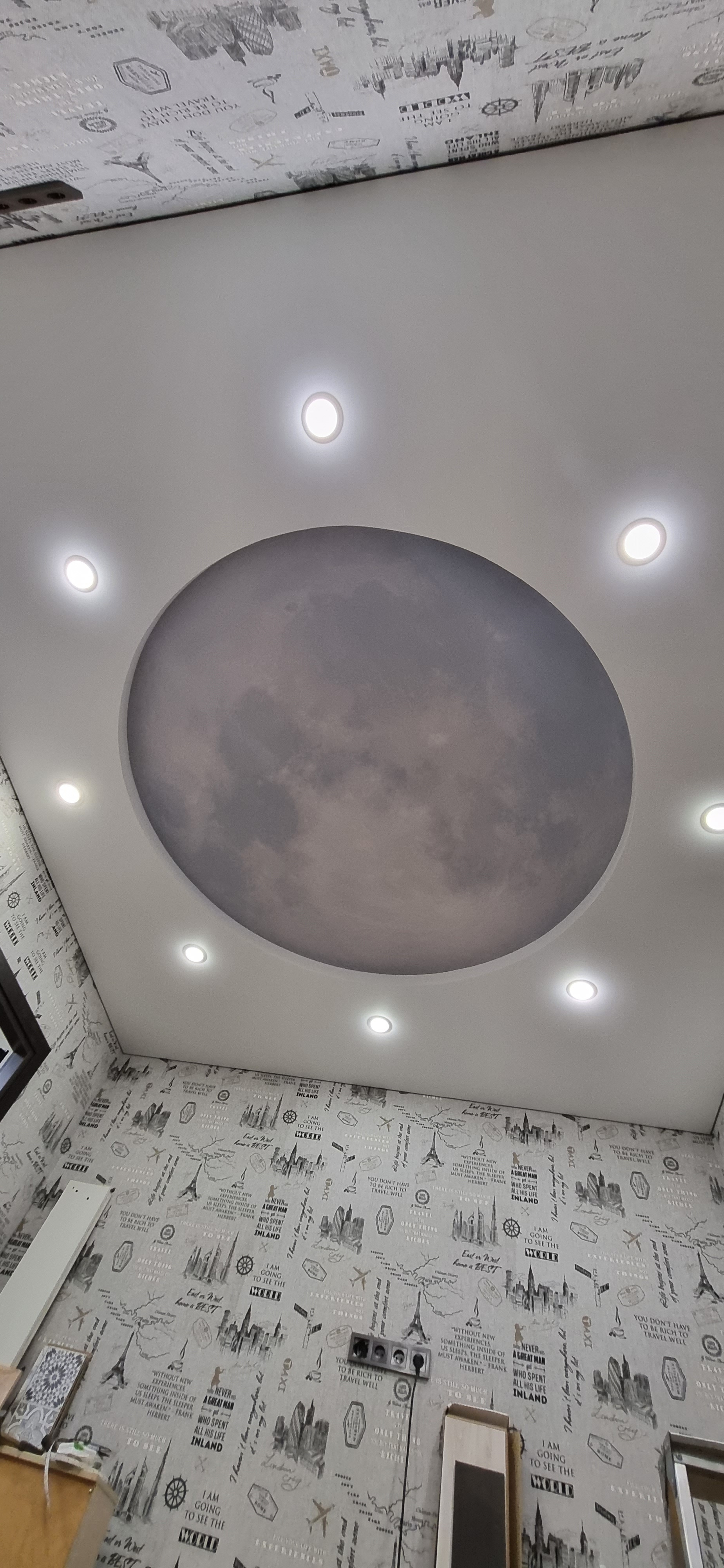 Располагая их на определенном расстоянии от полотна, вы получаете впечатляющий эффект. Это расстояние обычно составляет не менее 30 см, поэтому такие потолки чаще всего используют в высоких помещениях. Однако, они также могут быть установлены в обычных комнатах, хотя это потребует большего количества световых лент и, следовательно, более затратно.