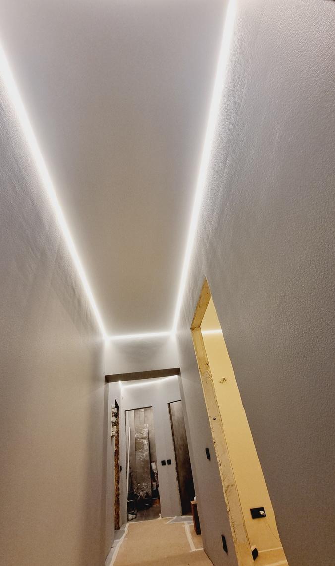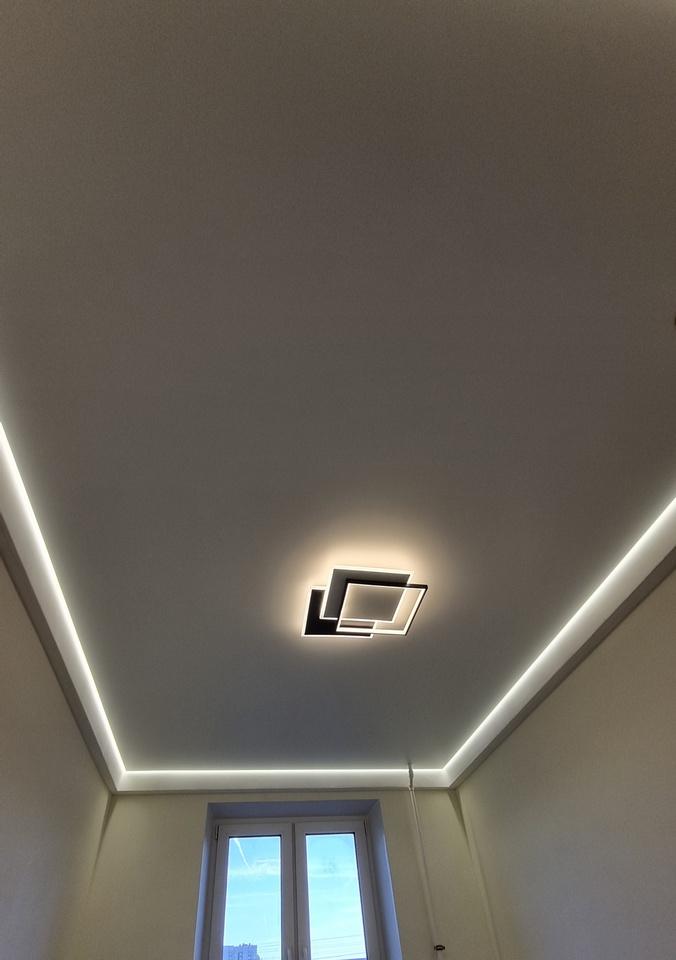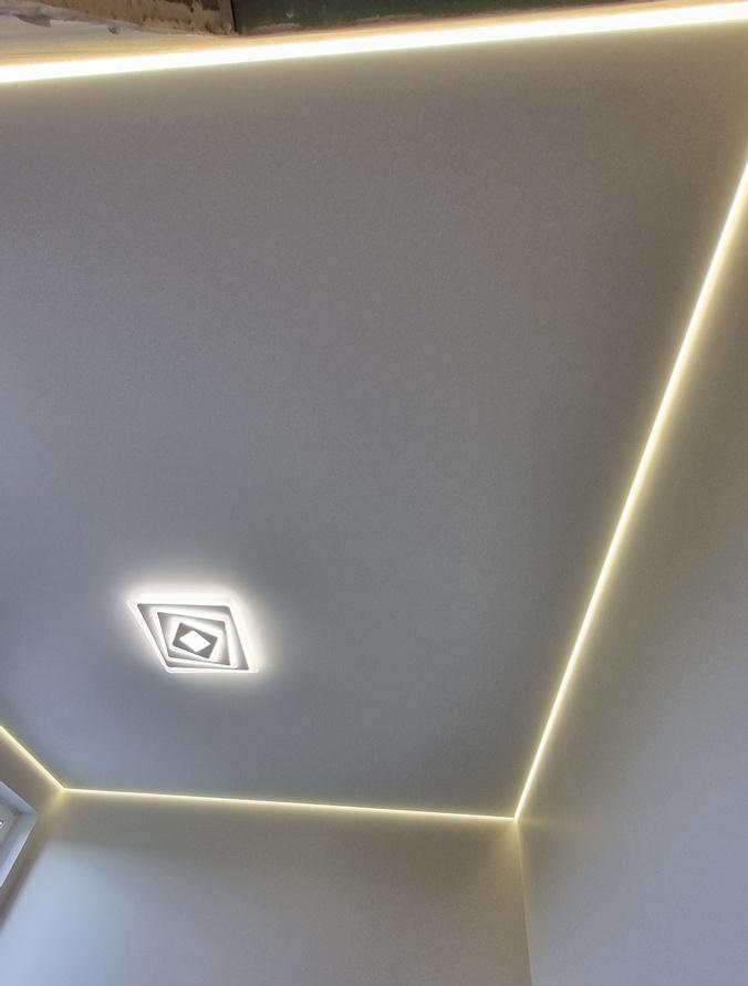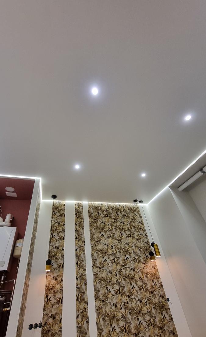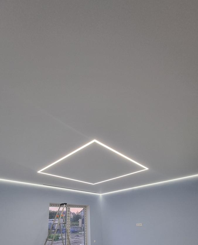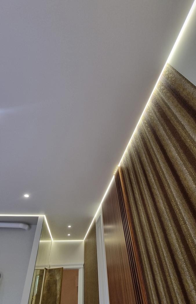 Парящие натяжные потолки создают уникальное ощущение лёгкости и объёма за счёт мягкой подсветки по периметру. Светящаяся линия отделяет полотно от стен, благодаря чему возникает впечатление, что потолок парит в воздухе. Такая подсветка делает интерьер стильным, современным и выразительным.
